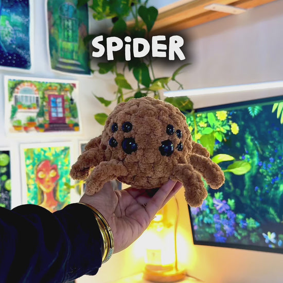 This listing is for a PDF downloadable version for the no-sew spider pattern in English. Finished plushie dimensions for size 7 yarn are approximately 7 inches wide and 5 inches tall.