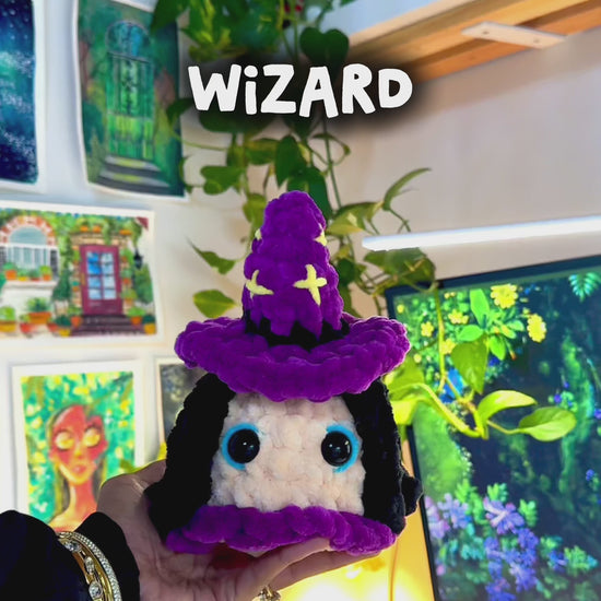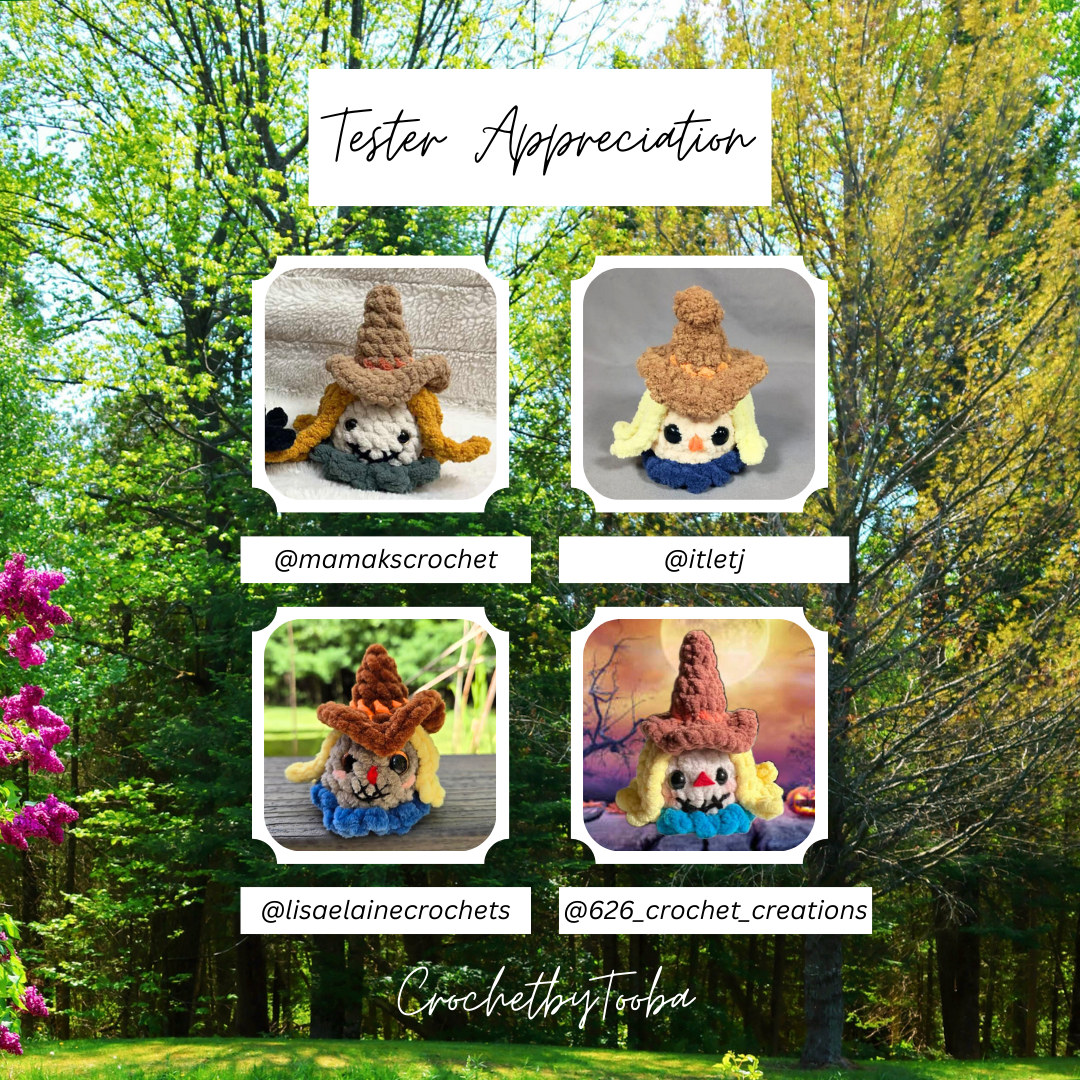 This listing is for a PDF downloadable version for the no/low-sew wizard, scarecrow & witch pattern in English. Finished plushie dimensions for size 7 yarn are approximately 5 inches wide and 8 inches tall.